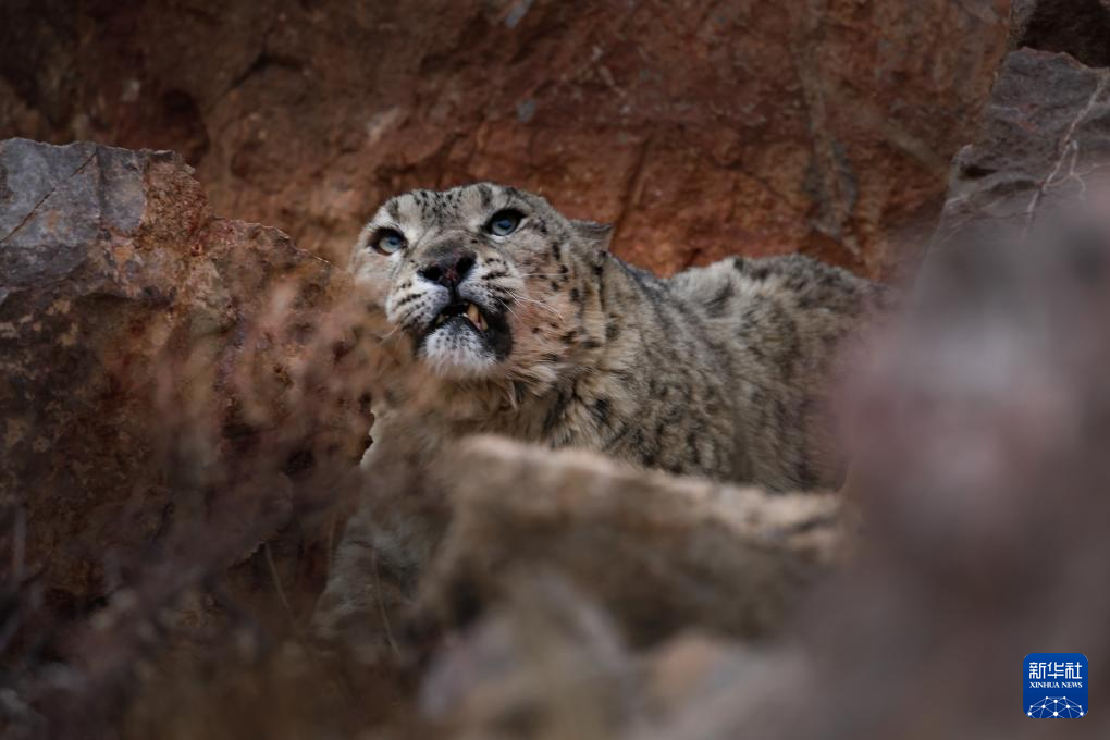 西藏阿里改則縣改則鎮(zhèn)玉多村附近巖山區(qū)域拍攝到的國家一級保護(hù)動(dòng)物雪豹(4月18日攝)。
