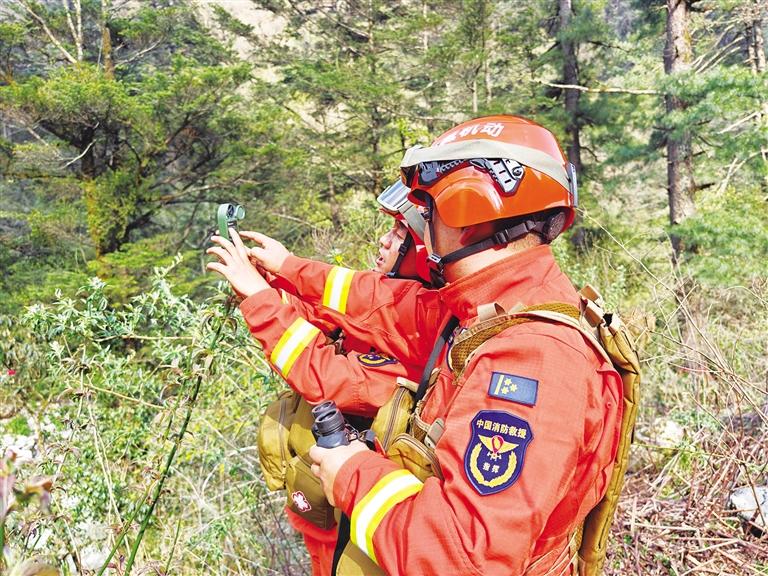 巡護隊伍踏上了蜿蜒曲折的山路。道路崎嶇陡峭,許多路段僅容一人通行,一側(cè)是近乎垂直的山坡,另一側(cè)是深不見底的山谷,令人望而生畏。消防員們背著重達30斤的各類防火裝備,隨著海拔不斷升高,每一步前行都需要耗費巨大的體力。但是沒有一人掉隊,他們相互鼓勵、彼此扶持,在艱難的山路上穩(wěn)步前進。行進途中,他們手持測風(fēng)儀、望遠鏡等專業(yè)設(shè)備,仔細觀察著每一處植被狀況,不放過任何可能存在的火源隱患。