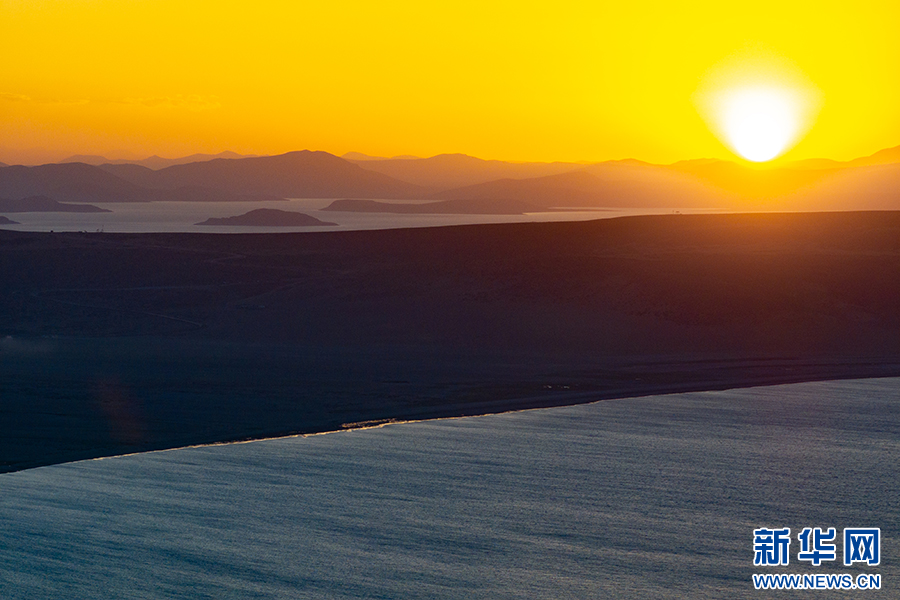 夕陽下的瑪旁雍錯(6月9日攝,無人機(jī)照片)。新華網(wǎng) 旦增努布 攝