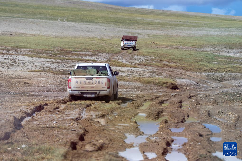 措羅木管理站的野生動物管護員驅(qū)車前往無人區(qū)深處的森隆藏布河畔(7月14日攝)。新華社記者 姜帆 攝