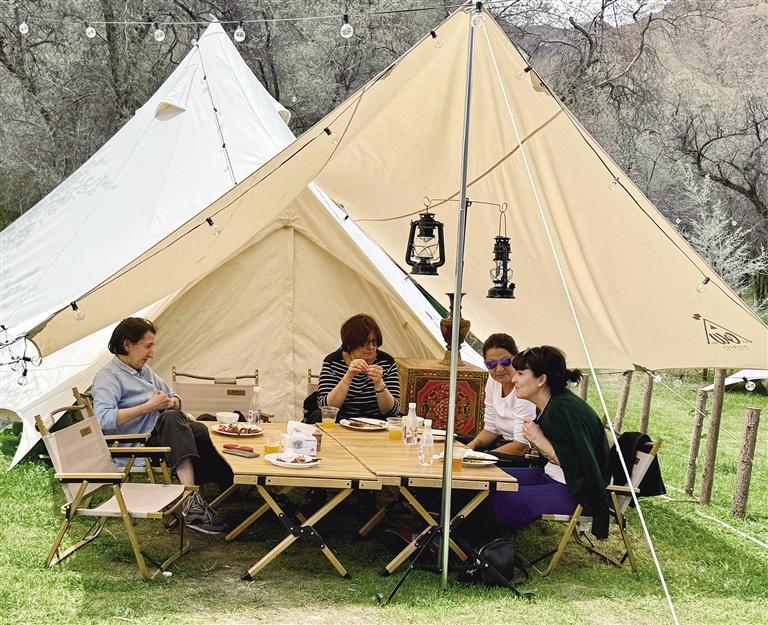 李女士說:“林卡中有一條小河流穿過,大人孩子可以在這里打水仗、坐船,玩累了還可以在這里燒烤,這就是我喜歡這里的原因?!背水?dāng)?shù)厝耍€有很多游客喜歡來這里體驗,喝一杯啤酒,跳一曲鍋莊舞,感受一下當(dāng)?shù)卮緲愕拿耧L(fēng)。