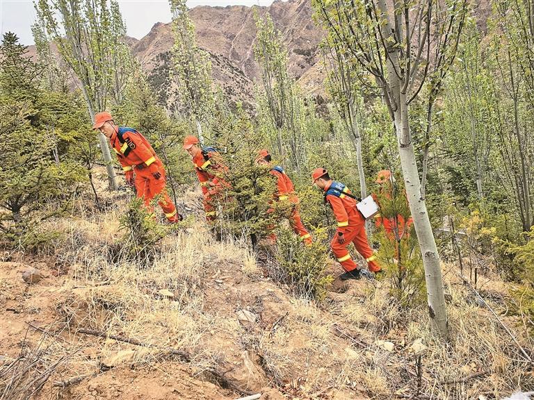 拉薩市森林消防大隊(duì)官兵在南山公園執(zhí)行巡邏任務(wù)。