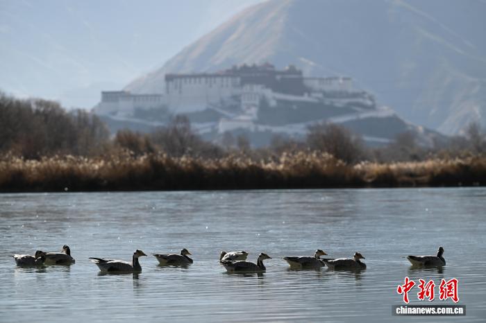 2025年12月9日,世界海拔最高的城市內(nèi)陸天然濕地——拉薩拉魯濕地國(guó)家級(jí)自然保護(hù)區(qū)盡顯冬日盛景。這片總面積12.2平方公里的“拉薩之肺”,初冬時(shí)節(jié)蘆葦泛金,赤麻鴨、斑頭雁等候鳥(niǎo)在此嬉戲覓食。遠(yuǎn)處布達(dá)拉宮巍然矗立,周邊雪山皚皚,自然生態(tài)與人文景觀交相輝映,構(gòu)成一幅兼具壯闊與靈動(dòng)的高原畫(huà)卷,彰顯著拉薩人與自然和諧共生的生態(tài)之美。圖為拉薩市民在拉魯濕地晨練。中新社記者 貢嘎來(lái)松 攝