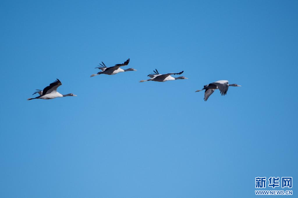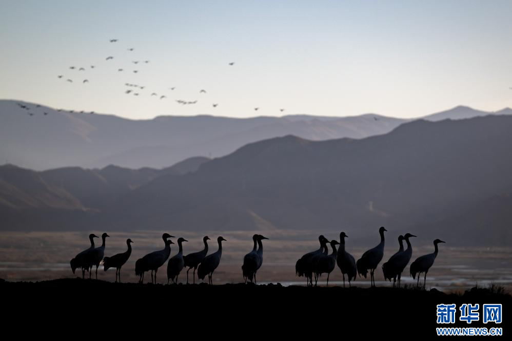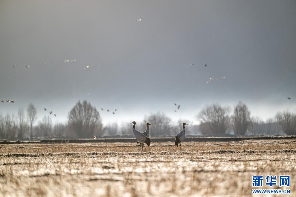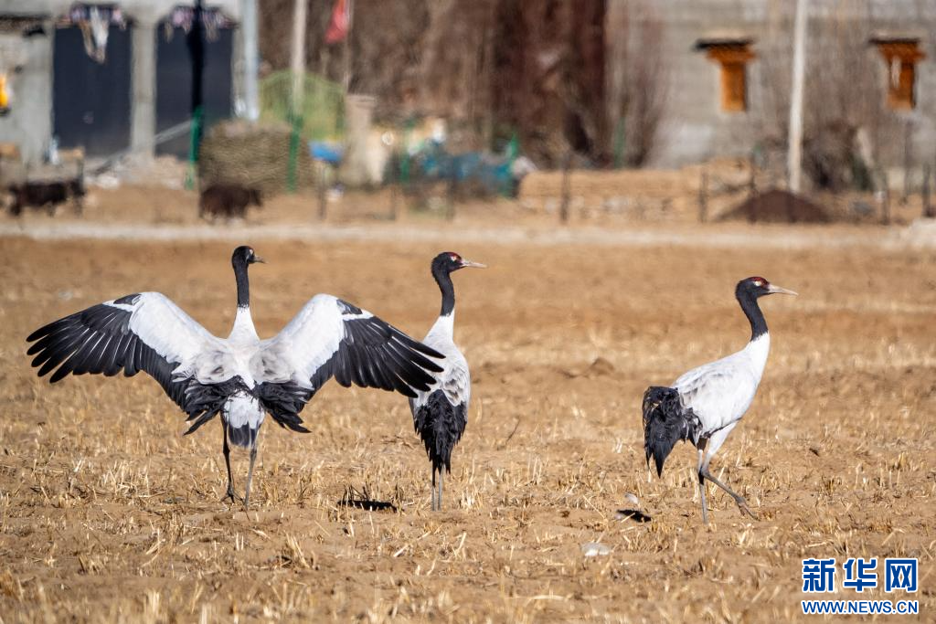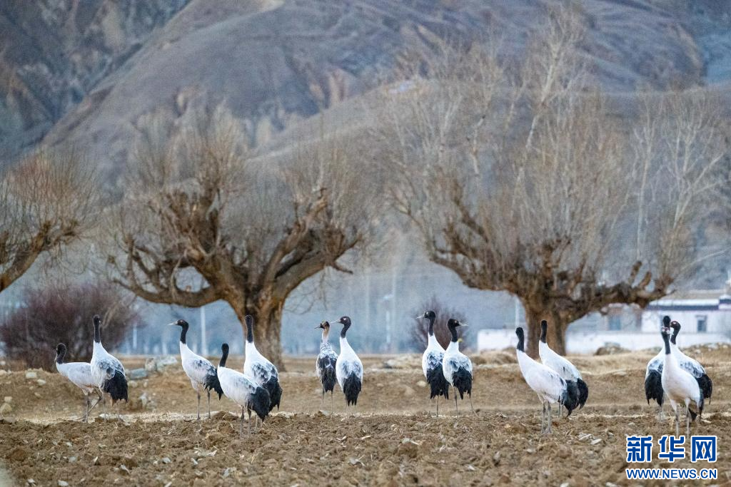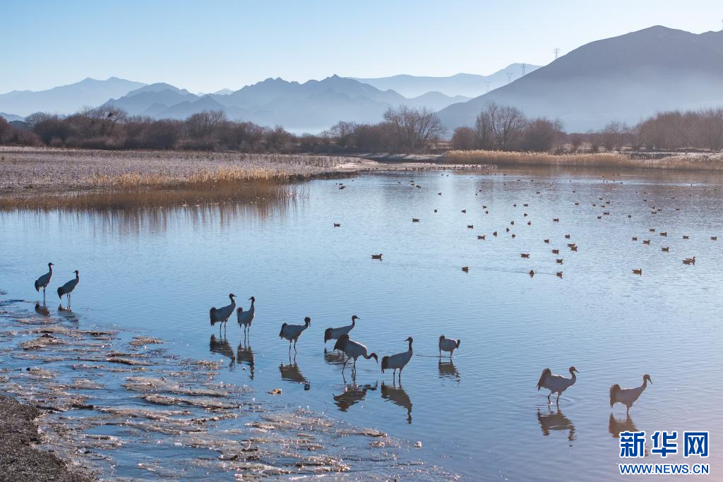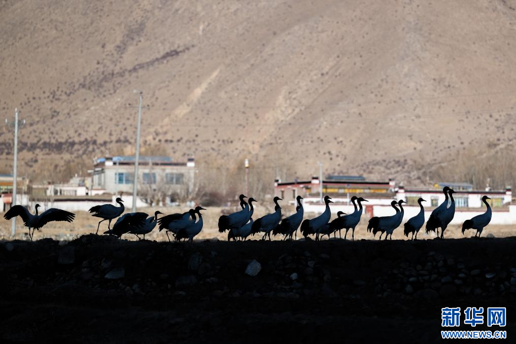 12月18日,在西藏日喀則市南木林縣境內(nèi)拍攝的黑頸鶴。新華網(wǎng) 旦增努布 攝