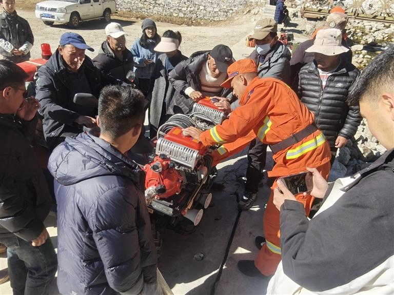 在山地水泵架設(shè)與撤收等核心實(shí)操環(huán)節(jié),消防救援人員結(jié)合當(dāng)?shù)厣降仄鸱?、坡度較大的地形特征,現(xiàn)場演示管帶鋪設(shè)技巧、水泵啟動(dòng)流程、壓力調(diào)節(jié)要點(diǎn),并針對參訓(xùn)人員提出的“水泵故障應(yīng)急處置”“復(fù)雜地形下管帶防纏繞技巧”“緊急避險(xiǎn)撤離路線選擇原則”等實(shí)際問題逐一解答。參訓(xùn)人員全程專注投入,主動(dòng)參與實(shí)操演練,相互交流學(xué)習(xí)心得,現(xiàn)場形成“比學(xué)趕超”的濃厚氛圍,確保每一項(xiàng)技能要點(diǎn)都學(xué)深悟透、練熟用活。