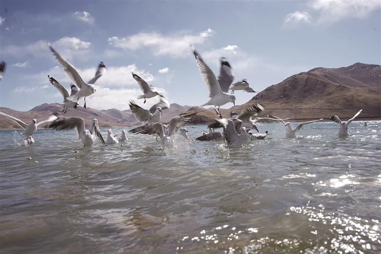 采風團成員沿湖畔步道緩緩行走,湛藍的湖水與遠處覆雪的山巒緊密相連,景色純凈而壯闊。途中,遇到了幾位游客,這些游客均是奔著“冬游西藏”的優(yōu)惠政策而來。一位來自廣東的游客表示,免票政策節(jié)省了不少出行成本,原本還擔心湖面會冰封,實際體驗遠超預期,而且此時游客稀少,能更好地感受羊湖的靜謐之美。