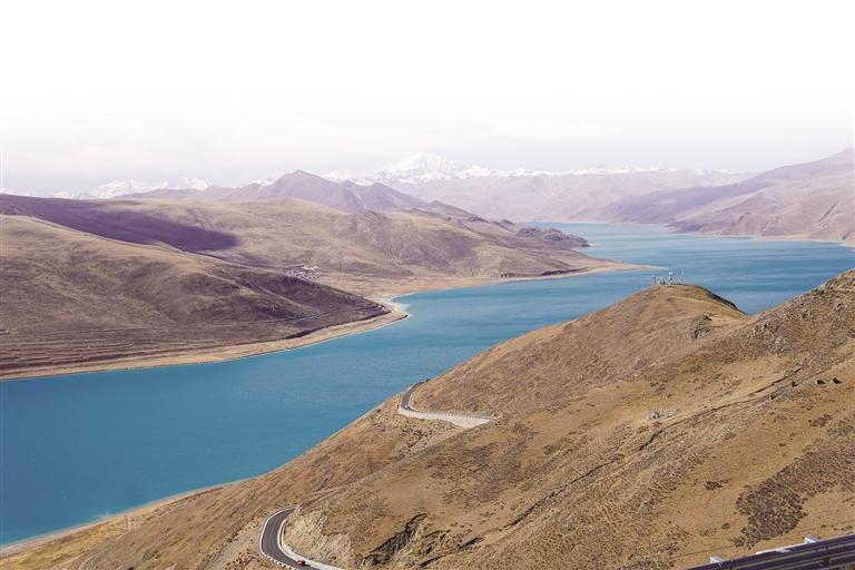 稀少的游客讓采風團得以獨享這份靜謐,在觀景臺上,大家可俯瞰羊卓雍措的全貌,湖水蜿蜒穿梭在山間,光影隨著陽光的推移不斷變化。采風團在此停留了近兩小時,用鏡頭和心靈,細細記錄下這份獨屬于冬日的雪域景致。