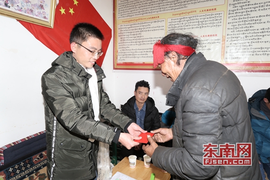 在資助會上,林謀東代表福州市第九批援藏工作隊(duì)與洛松玉珍簽訂了資助協(xié)議并發(fā)放資助金。直到此時,洛松玉珍和母親才如釋重負(fù),露出了久違的微笑。