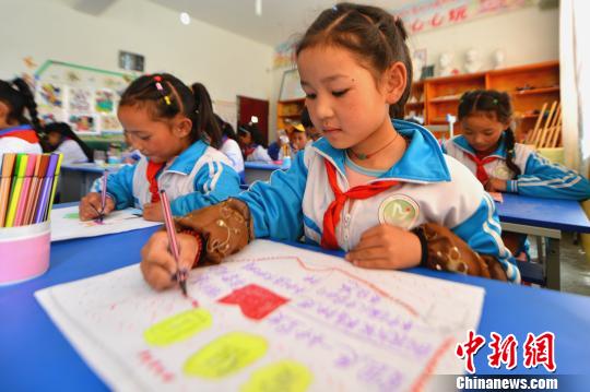 9月22日,西藏拉薩尼木縣一小學學生在上美術課。 江飛波 攝
