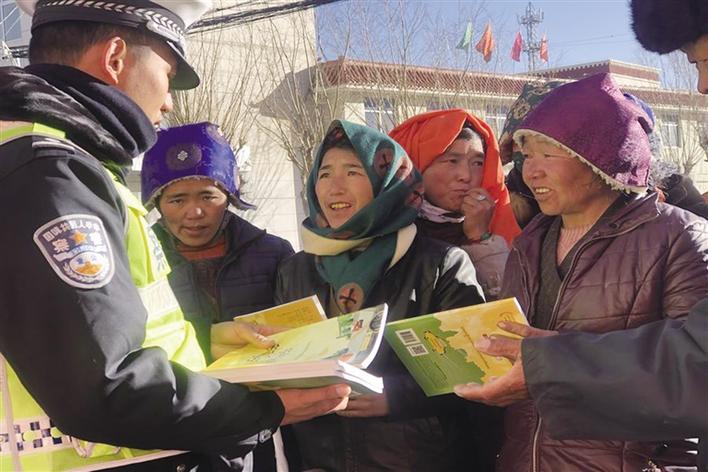 西藏拉薩尼木交警開(kāi)展道路交通安全宣傳教育活動(dòng)