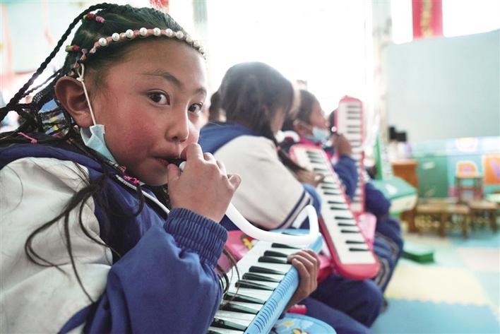 口風(fēng)琴擁有良好的和聲能力,廣泛應(yīng)用于各類音樂中。但是,對于果組小學(xué)的孩子們來說,這是他們第一次見到口風(fēng)琴。布扎西是該小學(xué)三年級的一名小學(xué)生,他是校園“小歌星”,每年六一兒童節(jié)學(xué)校舉行文藝匯演時(shí),他都要演唱自己的拿手歌曲——《我的家鄉(xiāng)》。第一次見到口風(fēng)琴,布扎西非常開心:“謝謝柏雪老師送給我們的禮物,我以后會好好學(xué)習(xí),爭取早日吹奏《小星星》!”