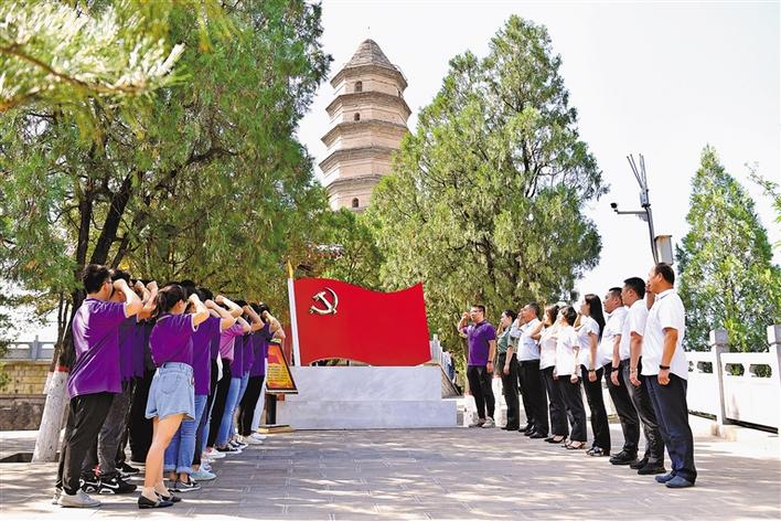 臨近“七一”,革命圣地延安的黨員干部紛紛來到紅色景區(qū),舉行主題黨課、現(xiàn)場(chǎng)教學(xué)、重溫入黨誓詞等活動(dòng)。