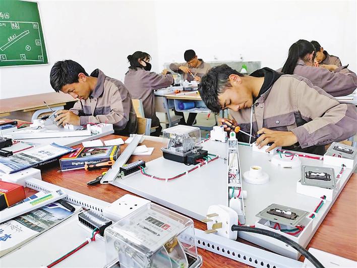 西藏技師學(xué)院的學(xué)生們在上電工實訓(xùn)課程,為將來走上工作崗位奠定基礎(chǔ)。記者 孫文娟 攝