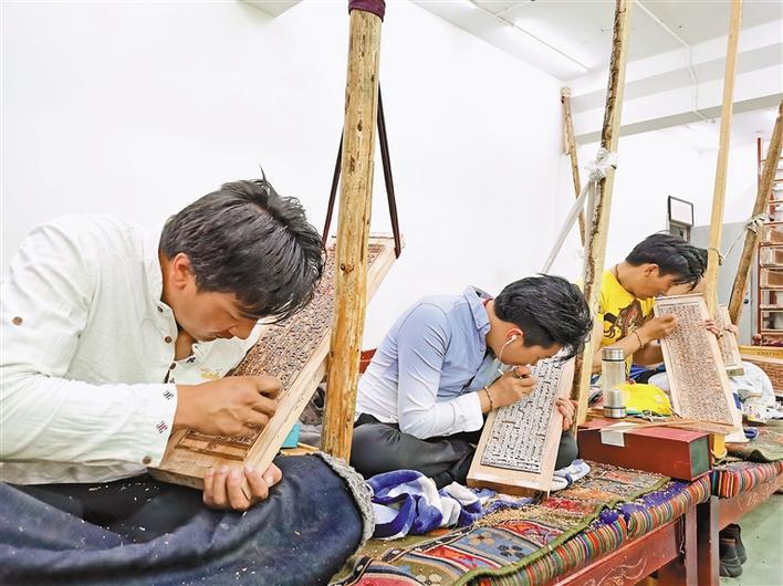 西藏雪堆白技工學(xué)校的學(xué)生們在練習木刻技術(shù)。記者 孫文娟 攝