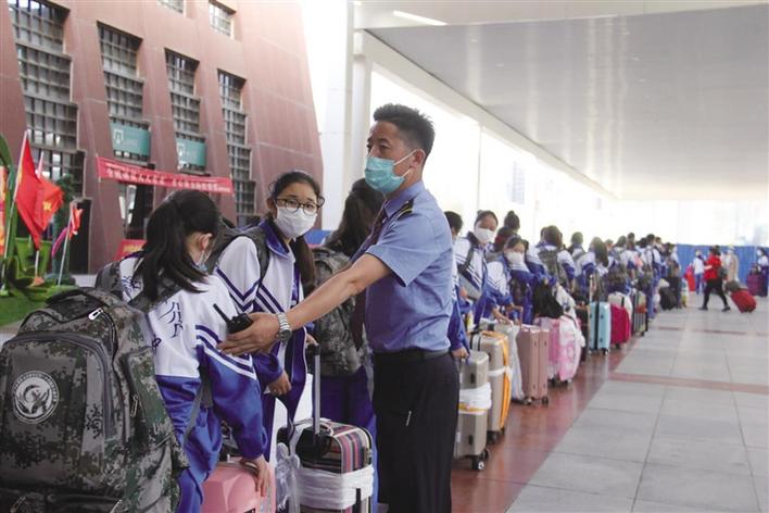 送考老師毛麗告訴記者,受疫情影響,今年進(jìn)藏送考任務(wù)比往年更艱巨,師生比原定計(jì)劃提前兩天出發(fā)。為了把孩子安全健康送到家長手中,出發(fā)前,老師做了充分準(zhǔn)備,為學(xué)生購買了KN95口罩、普通醫(yī)用口罩、洗手液、消毒濕巾等,保障學(xué)生路上安全?!拔覀冞€提前跟上?;疖囌尽⒗_火車站對接,爭取到獨(dú)立候車室、獨(dú)立安檢口以及綠色通道,制定了應(yīng)急預(yù)案和疫情防控流程,保障學(xué)生平平安安健健康康返回拉薩參加中考。”毛麗說。