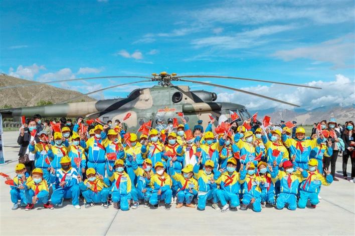飛行訓(xùn)練結(jié)束后,駐地小學(xué)學(xué)生為飛行員獻(xiàn)上鮮花?!袄蠋煟w行員們可真酷,我也想成為這么酷的人。”看著飛行員們,學(xué)生小卓瑪拉著老師偷偷說道。
