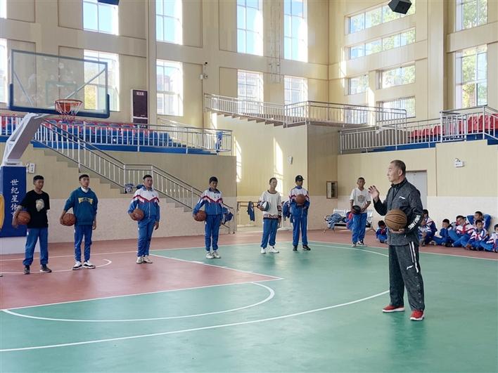 王志國給拉薩四中學(xué)生上籃球課