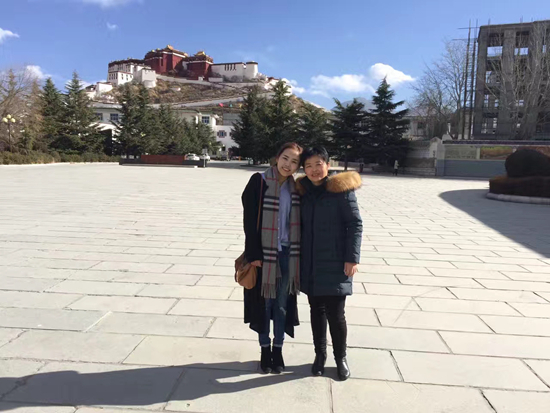 2017年1月,09屆宏志生諾吉·曲擁措姆(左一)去拉薩中學(xué)看望呂淑霞。曲擁措姆現(xiàn)為哈爾濱工業(yè)大學(xué)在職博士,在共青團(tuán)中央統(tǒng)戰(zhàn)部民族宗教處掛職。