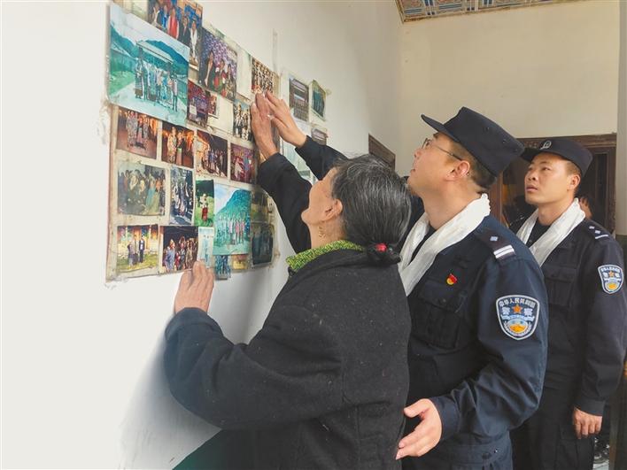 圖為察隅縣竹瓦根鄉(xiāng)旺秋卓瑪老人與民警一起觀看舊照片。高琦磊 彭琦 攝