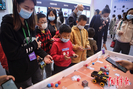 11月1日,山西太原,中國(太原)人工智能大會主題展覽現(xiàn)場,一家主打人工智能和機(jī)器人的高科技創(chuàng)新公司研發(fā)的機(jī)器人競技類游戲吸引了許多小朋友駐足體驗(yàn)。10月31日,中國(太原)人工智能大會舉辦,大會主題展覽同步舉行,40余個(gè)展位集中展示當(dāng)前人工智能產(chǎn)業(yè)核心技術(shù)、產(chǎn)品和創(chuàng)新成果。