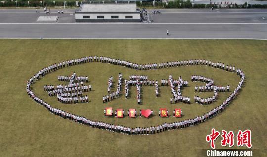 資料圖:學生在操場拼出“老師好”字樣和愛心圖案獻禮教師節(jié)。孟德龍 攝