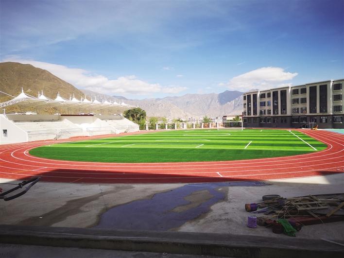 為一睹拉薩市城關(guān)區(qū)第六小學(xué)的真容,記者來到拉薩河南岸的慈覺林,沿著格桑路一路前行,在妙光大道與云天路交叉路口看到了已經(jīng)建設(shè)完成的城關(guān)區(qū)第六小學(xué),該小學(xué)位于中國西藏文化旅游創(chuàng)意園內(nèi)。目前,教學(xué)綜合樓、教學(xué)樓、教工宿舍、學(xué)生食堂、操場等已建設(shè)完成,并完成初驗(yàn),預(yù)計2020年12月移交城關(guān)區(qū)政府投入使用。學(xué)校內(nèi)寬廣的足球場、紅色的塑膠跑道非常吸引人,“等學(xué)校投入使用后,孩子們就可以在這里踢足球、打籃球,愉快地玩耍了。”拉薩市加快教育改革和發(fā)展領(lǐng)導(dǎo)小組辦公室工作人員甲措說。