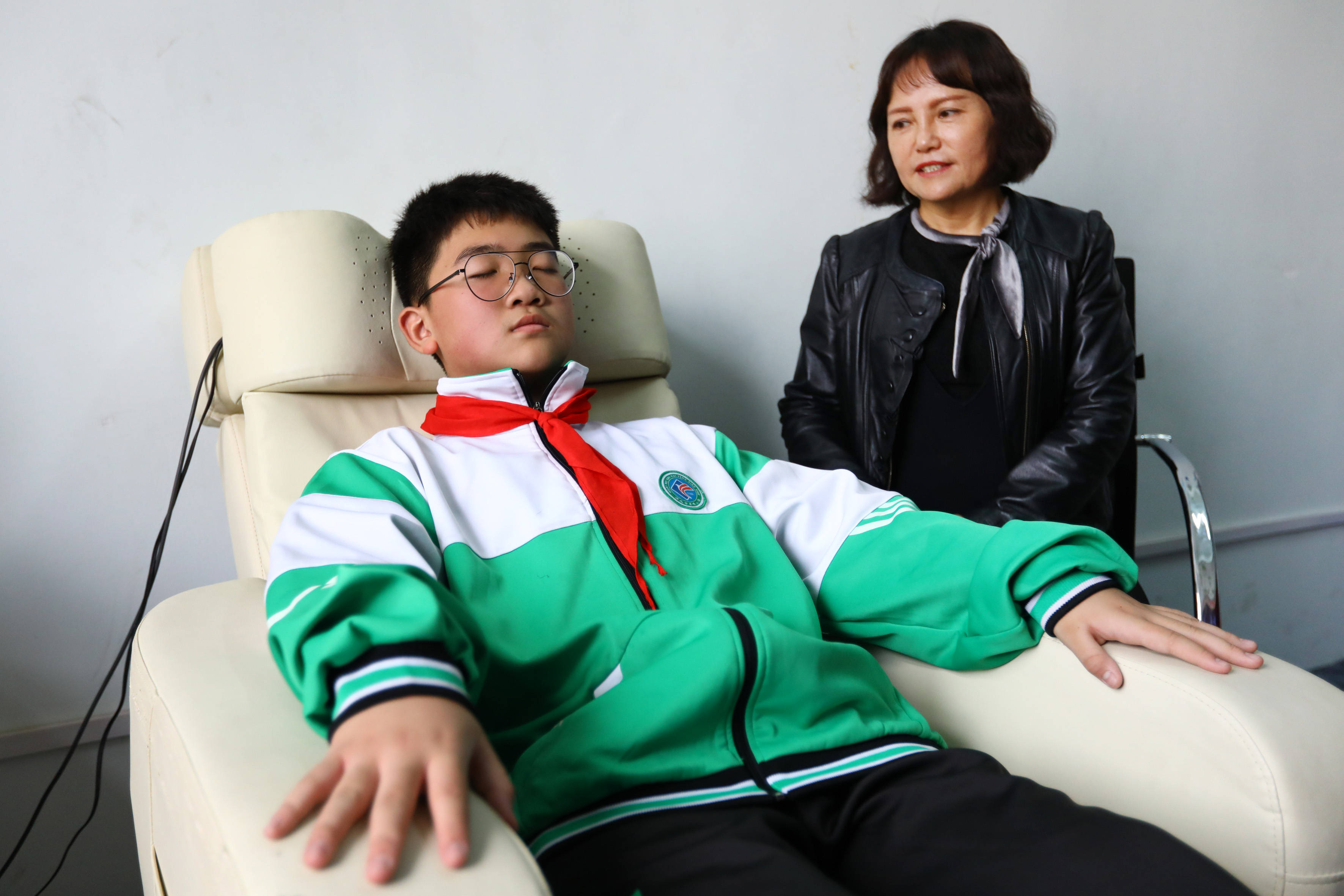 11月15日,淮北市的小學生在相山區(qū)未成年人心理健康輔導站音樂室聽音樂放松身心。