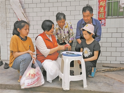 2020年6月21日,張彥杰(左二)為明揚(yáng)鎮(zhèn)父母雙殘的孩子黎俊秀及妹妹送去2000元助學(xué)金。本版照片除署名外均由受訪者提供