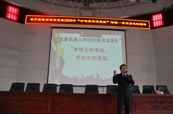 安寧市“螳川先鋒”龍?jiān)隽祭蠋熤v授黨課。供圖