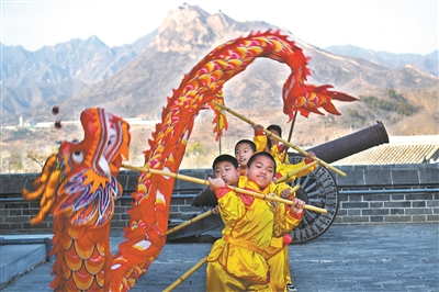 北京市密云區(qū)古北口鎮(zhèn)中心小學結(jié)合戍邊文化、地域文化,成立“舞龍”社團。喜愛傳統(tǒng)舞龍文化的學生登上長城,舞出“堅毅”精神,舞出時代風采,舞出民族自豪。樊世剛 攝