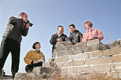 “讓每一塊城磚開口,讓每一處遺址說話?!惫疟笨阪?zhèn)中心小學校長徐國文(左三)帶領(lǐng)教師把教研活動搬到了長城上,探討如何打破課程設置“壁壘”,在考察、尋訪、探究、實踐中培養(yǎng)學生堅毅品格。樊世剛 攝
