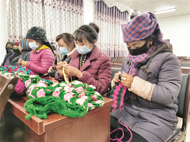 圖為達(dá)孜區(qū)邦堆鄉(xiāng)克日村婦聯(lián)組織婦女集中開展了“巾幗夜校領(lǐng)學(xué)”活動(dòng),學(xué)員們?cè)诂F(xiàn)場(chǎng)進(jìn)行手工編織。拉薩融媒記者 范江英攝