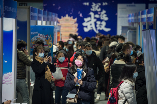 12月2日,2021屆全國(guó)普通高校畢業(yè)生就業(yè)創(chuàng)業(yè)促進(jìn)行動(dòng)(湖北·武漢)對(duì)接大會(huì)在洪山體育館正式啟動(dòng)。人民視覺(jué)供圖