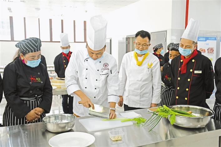 圖為在林芝技工學校“粵菜師傅”技能培訓課上,粵菜老師正在為學員講解粵菜制作方法。張猛 胡文 攝