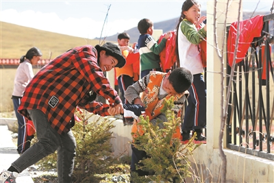 “林瑤可是我們學(xué)校的寶貝,既是開心果,又是救火隊員。開學(xué)時,六年級缺數(shù)學(xué)教師,我就讓她頂上去了?,F(xiàn)在,除藏語文外,林瑤什么課都教過,每周要上近30節(jié)課。我們這里海拔4300米,高寒缺氧,但她不缺精神!”說起林瑤,吉尼賽第二寄宿學(xué)校校長索南鬧吾不由得豎起了大拇指。