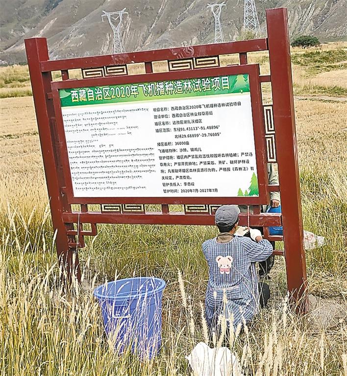 在柳梧大橋附近公路旁的一座山上,一排由綠樹組成的“建設(shè)美麗西藏”幾個大字讓人眼前一亮?!斑@就是我們公司設(shè)計完成的,花費了我們很多心血,也因為這一單業(yè)務(wù)的成功,我們公司在市場上得到了認可?!备裆K苤钢鴰讉€大字高興地說。