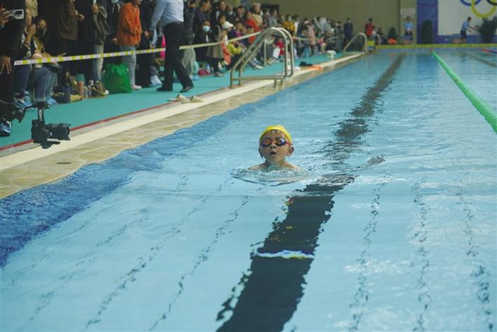 比賽現(xiàn)場,泳池邊一派熱鬧景象,小朋友們摩拳擦掌,舒展筋骨,認真做著熱身運動?!班?!”槍聲響起的那一刻,選手們一個個猶如離弦之箭在50米的賽道上沖刺,朝著對岸終點勇往直前。選手們全力以赴,爭分奪秒,碧水中揚起層層水花,完美展現(xiàn)了參賽選手的風采和游泳運動的魅力。家長們在一旁打氣助威,拍視頻記錄著這一刻,選手奮力朝著對岸游動,永不放棄的精神,感動著觀看比賽的每一個人,賽場頓時暖了起來。