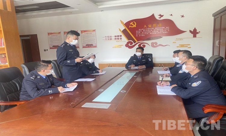 圖為拉薩邊檢站執(zhí)勤三隊民警集體學(xué)習(xí)