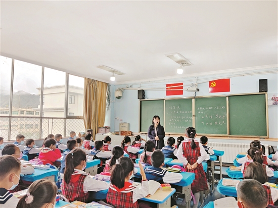 圖為拉薩市第一小學(xué)四年級(8)班班主任在為同學(xué)們開展開學(xué)第一課主題班會。 拉薩融媒記者 余洋洋攝