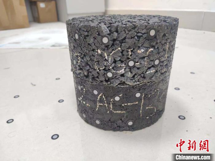 國家自然科學(xué)基金項目及雄安新區(qū)項目——瀝青路面復(fù)合試件成型。 受訪者供圖