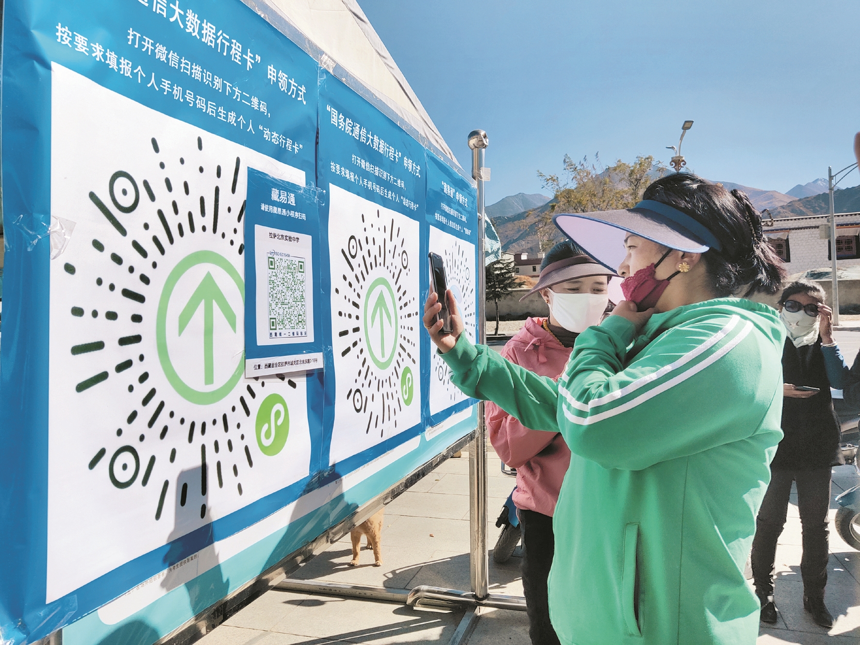 圖為進入校園的人員正在掃描“場所碼”。 拉薩融媒記者 余洋洋攝