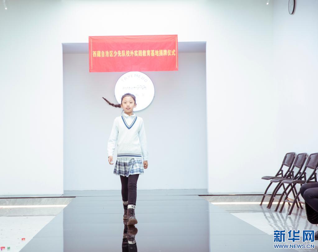 儀式上,參加活動(dòng)的相關(guān)負(fù)責(zé)人共同為基地揭牌。隨后,塔耶梅朵美育培養(yǎng)中心的小模特們帶來了精彩走秀,贏得到場(chǎng)觀眾的陣陣掌聲。