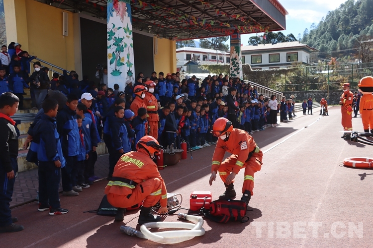 中國西藏網(wǎng)訊 近日,西藏自治區(qū)林芝市察隅縣森林消防中隊走進下察隅中心小學(xué)開展森林防火宣傳活動。圖為活動現(xiàn)場