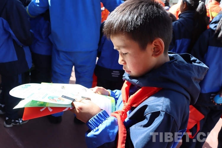 該小學(xué)相關(guān)負責(zé)人表示,通過森林火災(zāi)安全宣傳教育活動,進一步提升了全校師生的森林防火意識,提高了大家保護生態(tài)的安全意識。圖為小學(xué)生閱讀消防員發(fā)放的宣傳冊 (中國西藏網(wǎng) 通訊員/張林)