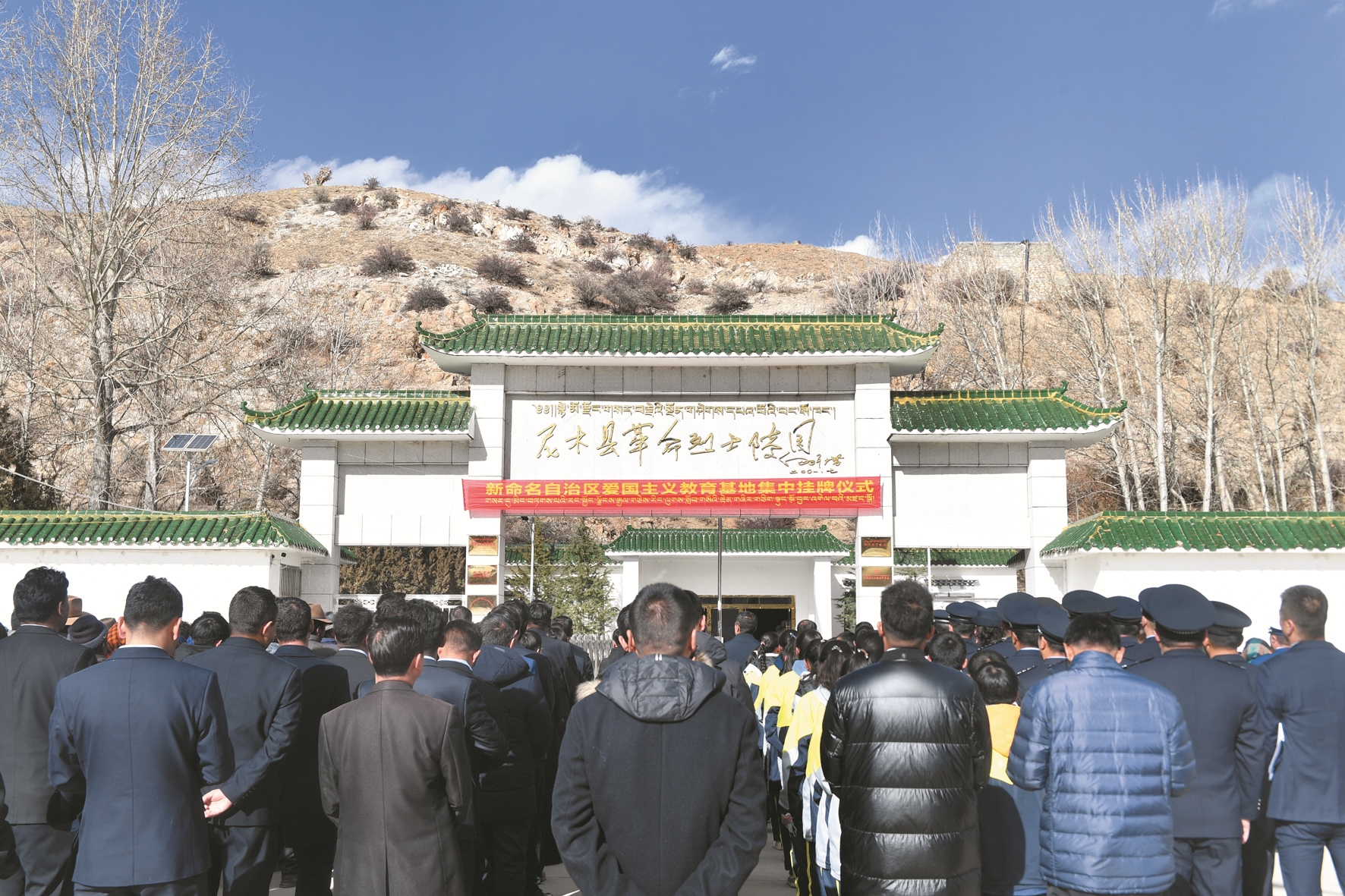 12月14日,新命名的自治區(qū)愛國(guó)主義教育基地尼木縣革命烈士陵園和林周農(nóng)場(chǎng)紅色遺址集中掛牌儀式在尼木縣革命烈士陵園舉行,尼木縣干部群眾、公安干警、學(xué)生等200余人參加掛牌儀式。