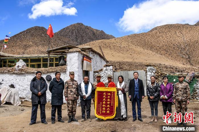 圖為拉薩市林周縣武裝部和退役軍人事務局慰問旁多鄉(xiāng)入伍兄弟?!≈斐?攝