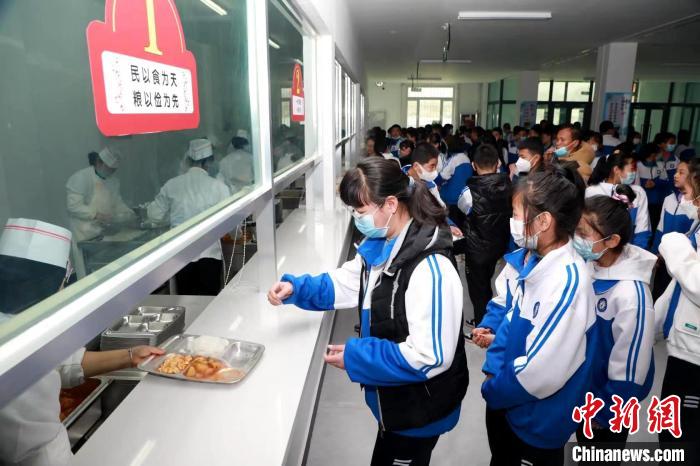 圖為海東市民和縣中學生在食堂打飯。(資料圖) 石延壽 攝