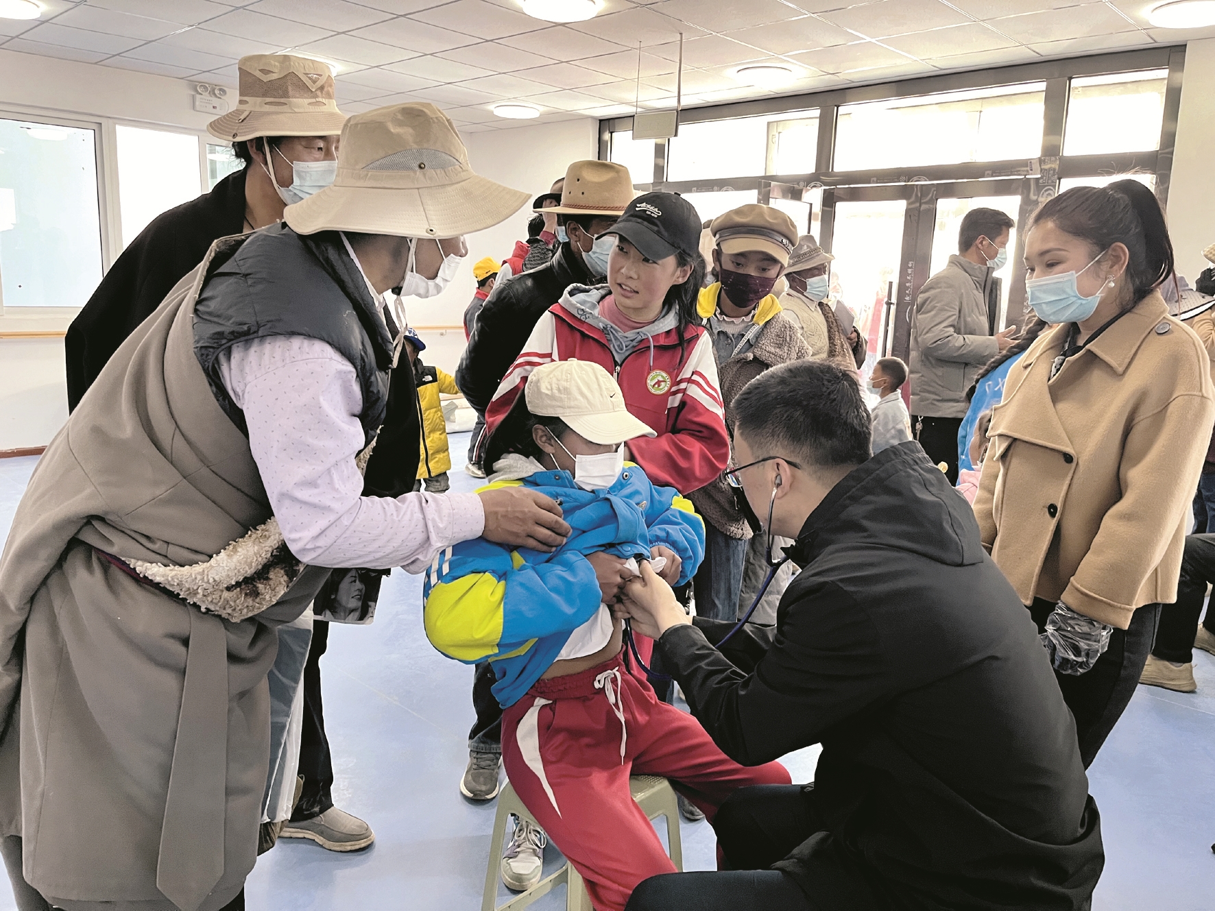 圖為醫(yī)生正在給學(xué)生進行先心病篩查。 拉薩融媒記者 莫瑞英攝