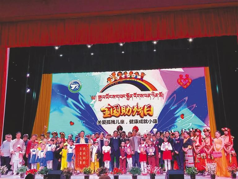 圖為在全國助殘日,全校師生開展“關(guān)愛孤殘兒童,健康成就小康”活動(dòng)。