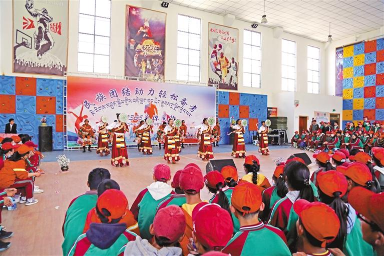 墨竹工卡縣在縣中學(xué)籃球館舉辦中考減壓活動